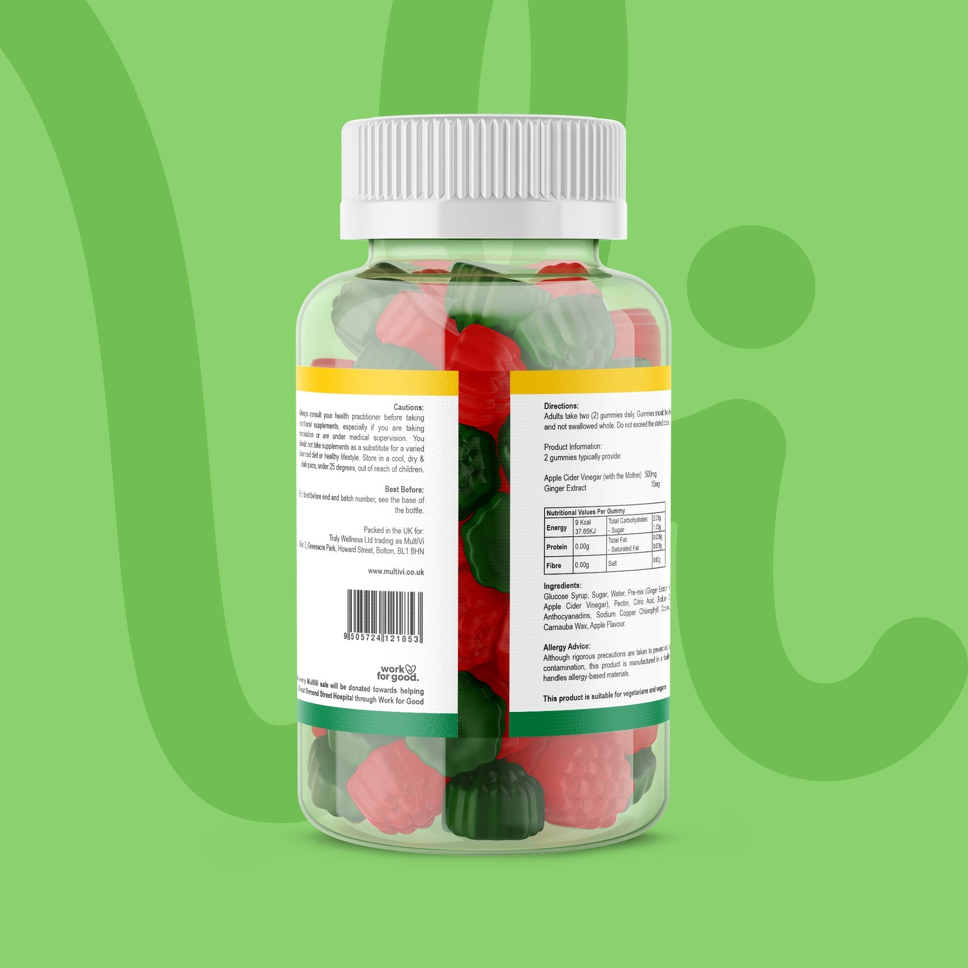 Each gummy delivers a synergistic blend of ACV and ginger in precise doses designed for daily use, with a smooth apple flavour.